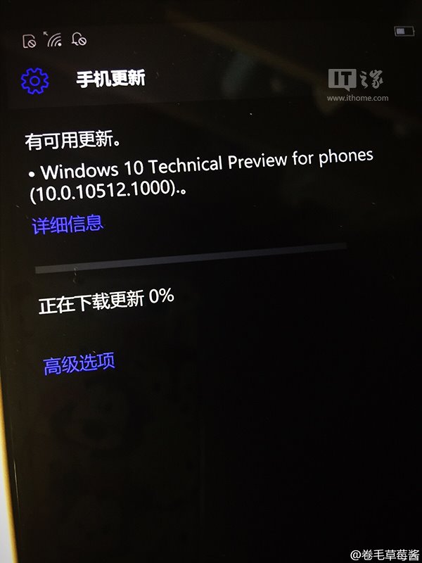 微博网友@卷毛草莓酱在8月7日收到了Windows10手机版10512更新,可能是特殊渠道版本,相信大家都没有收到该更新。不过从侧面已经确认,近期将要推送的Win10 Mobile系统将会是10512。 标签:Windows,win10