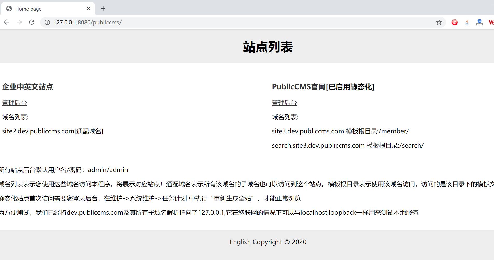 访问页面即可看到两个演示站点信息。