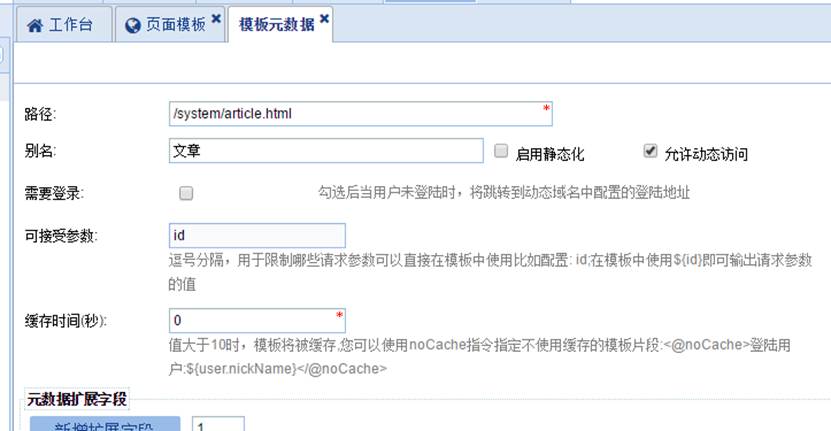 普通页面模板在使用动态方式时需要在后台模板元数据中设置为允许动态访问。