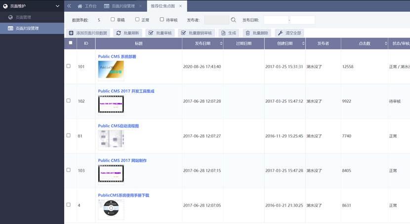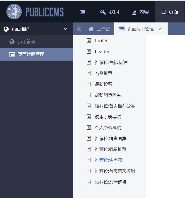 另外页面片段还可以通过在元数据中设置数据有效条数,绑定一个可扩展的数据列表,绑定了数据的页面片段我们一般将之称为推荐位,比如焦点图、友情链接、编辑推荐文章等就可以使用推荐位来实现。可以让开发人员少开发一些后台管理功能,仅仅在后台添加页面片段的方式就能实现一些碎片化数据的展示、维护。